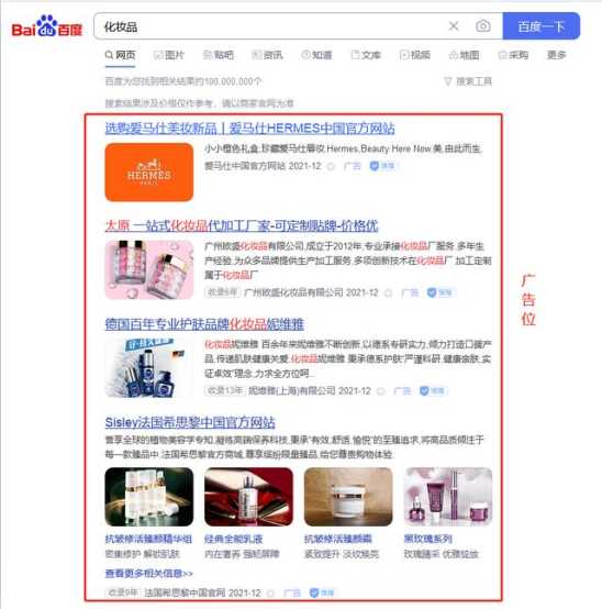 百度搜索排名官方的解释是一种按照点击付费的网络宣传推广,简言之也就是企业投放了百度广告后,每一个被网名搜索对应的关键词然后产生了点击,那么每一次的点击都会产生广告费用,那么这个费用就会从开通账户时的预存广告费用中扣除。举个例子,比如“化妆品”这个词通过后台查到***展现价格是2元,但是咱们企业老板又想让自己的排名靠前一点,因为排名越靠前被用户看到的几率就越高,相应的被选择概率也就越高,然后就对“化妆品”这个词出价5元,获得了较好的排名。同时,广告主使用“化妆品”投放,***的时间里被用户点击访问了300次,即5元*300次=1500元。(此为举例样板,具体以实际投放价格为准),还有就是百度关键词的出价越高,越可以获得较前的位置,进而可以获得更多的用户咨询。